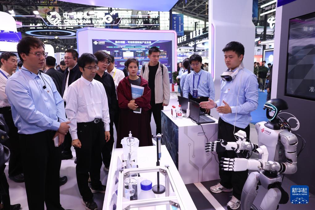 10月17日,参观者在博览会上观看机器人操控技术展示。