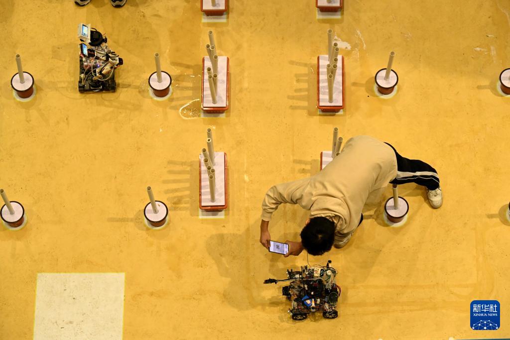 10月17日,参赛选手在河北省石家庄国际会展中心进行赛前调试。