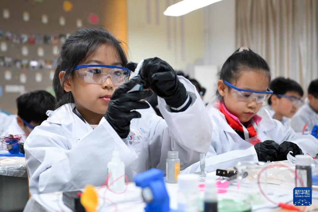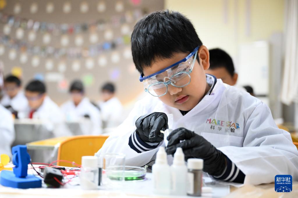 10月18日,学生在西安市新城区太华路小学参加科学实验操作赛。