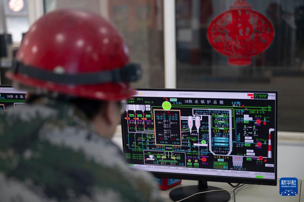 10月20日,在哈尔滨市华能集中供热有限公司,工作人员在检测设备运行情况。