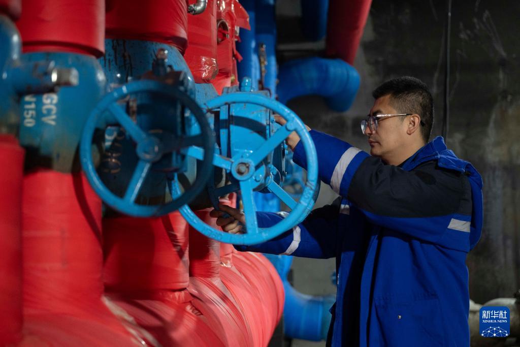 10月20日,在哈尔滨市北五道街85号提标增效换热站,工作人员在调整阀门。