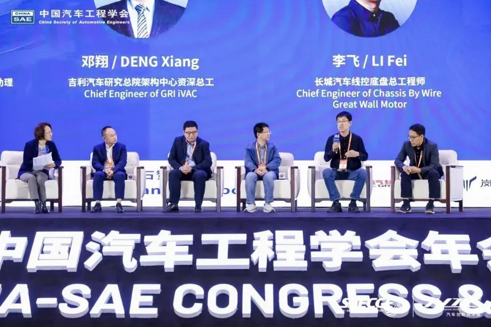 比亚迪底盘技术开发中心总监廖银生,吉利汽车研究总院架构中心资深总工程师邓翔,长城汽车线控底盘总工程师李飞,理想汽车智能底盘高级总监赵亮,博世车辆运动智控系统中国区新型制动系统产品副总裁张连冲围绕“智能底盘从技术突破到量产落地”主题进行了圆桌对话。圆桌对话环节由中国汽车工程学会智能底盘分会副主任委员侯杰主持。