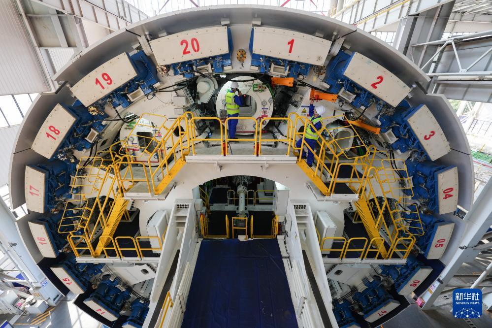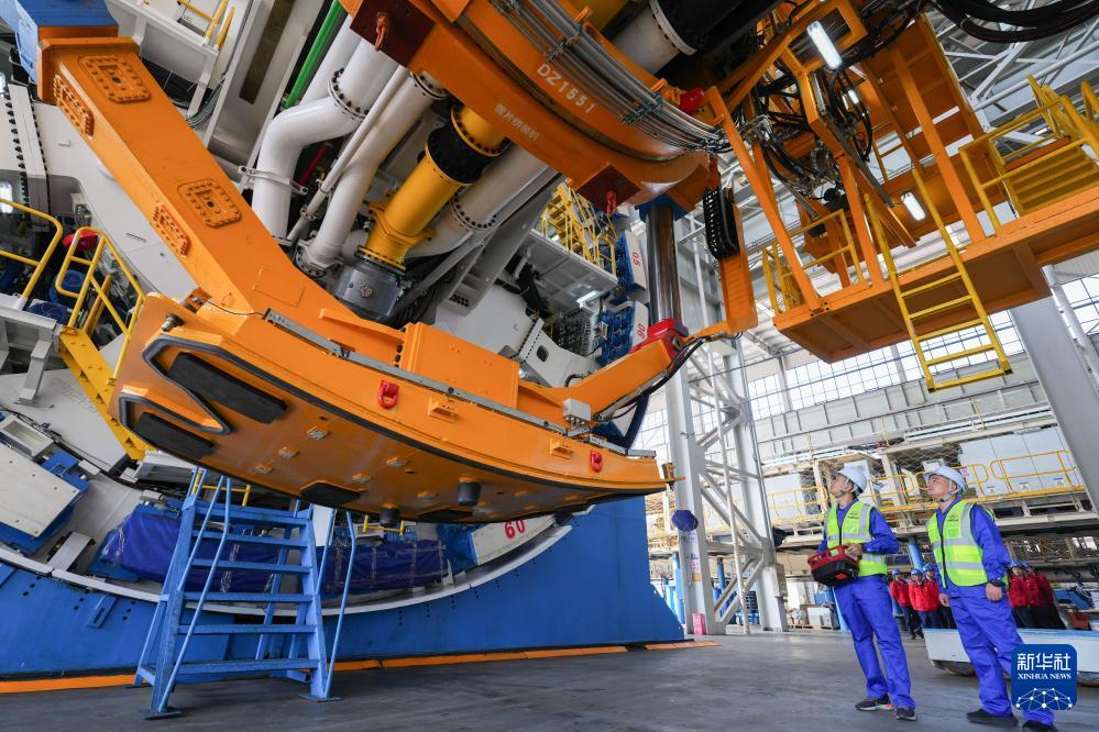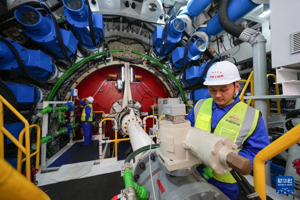 10月24日,在铁建重工长沙第一产业园,工人在调试“龙岗二号”盾构机。