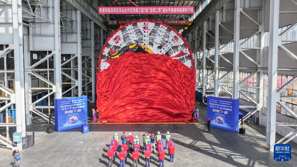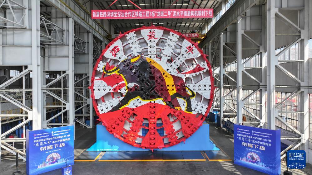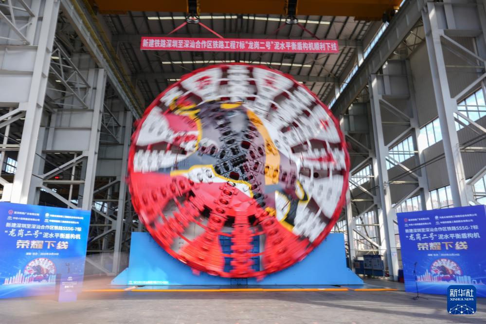 10月24日,由中铁十四局和铁建重工集团联合打造的“龙岗二号”盾构机在湖南长沙下线。这台盾构机整机长约117米,总重量约3600吨,开挖直径14.31米,将应用于深汕高铁龙岗隧道建设。