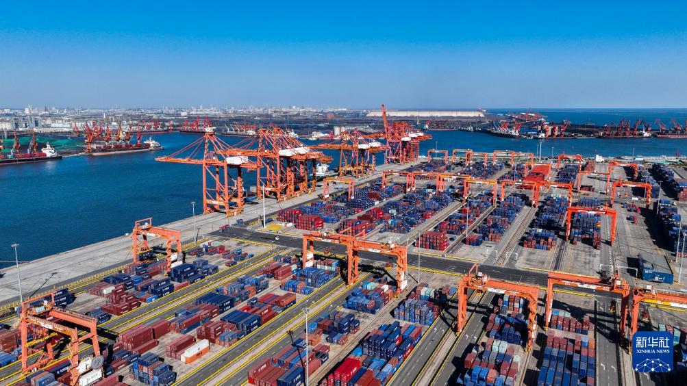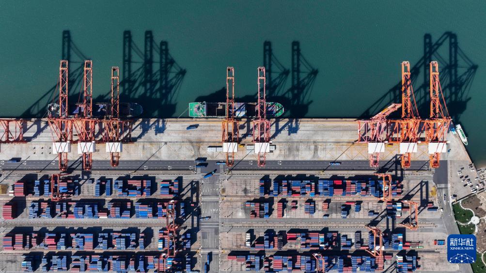 10月27日拍摄的河北省唐山港京唐港区集装箱码头(无人机照片)。