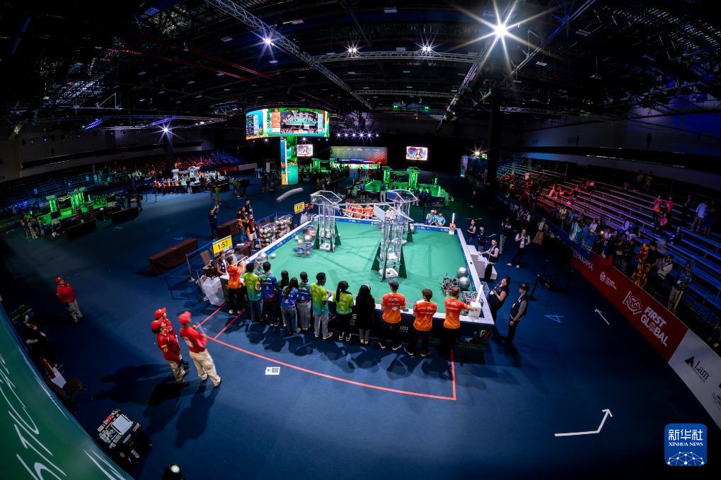 这是11月1日在巴拿马首都巴拿马城拍摄的2025年FIRST全球机器人挑战赛现场。