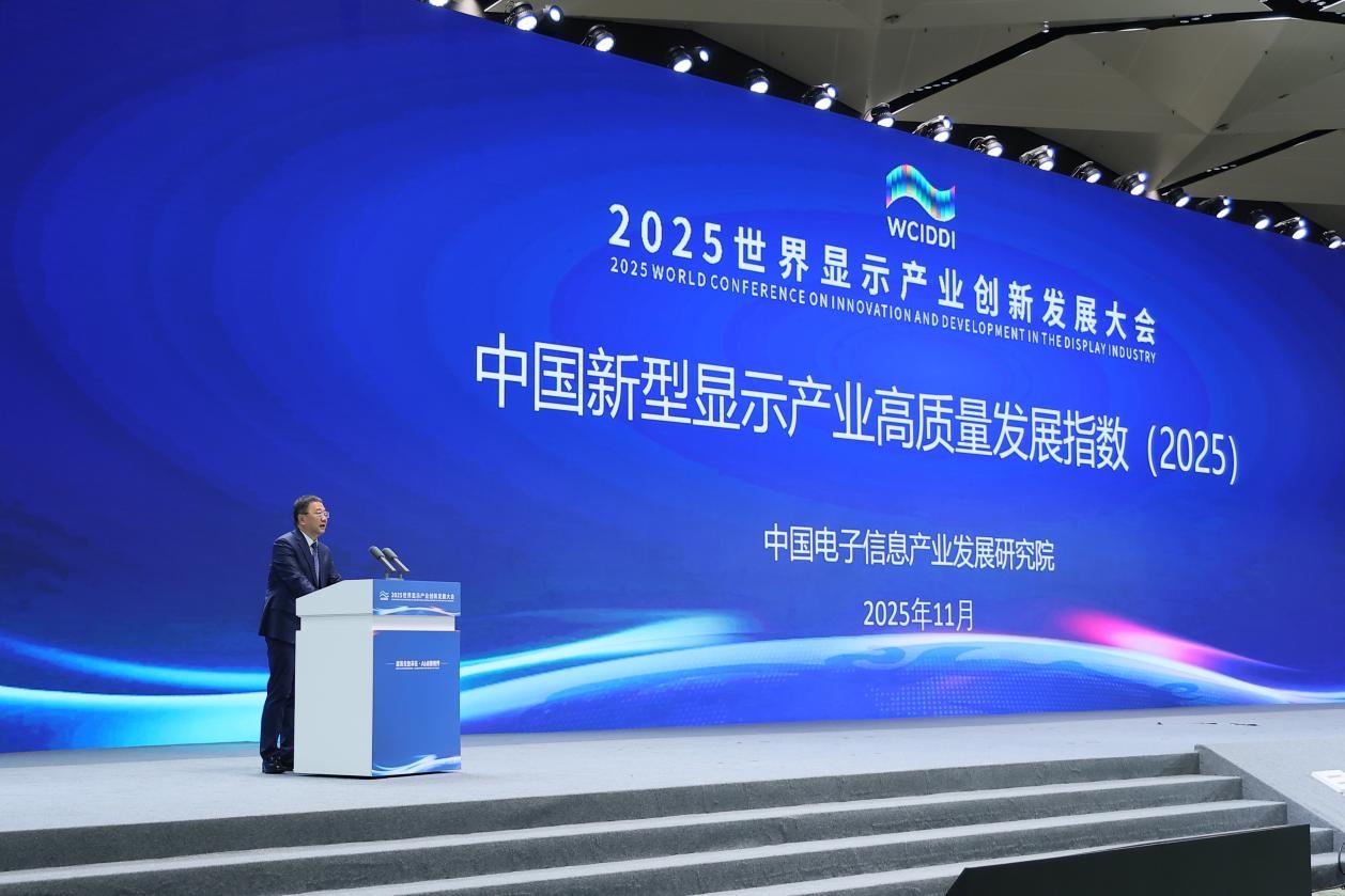 在大会开幕式上,中国电子信息产业发展研究院发布了《中国新型显示产业高质量发展指数(2025年)》(以下简称《指数(2025)》)。《指数(2025)》显示,合肥、深圳、成都等地依托产业链布局、技术创新和产能规模等优势继续位居中国显示产业高质量发展十大城市前三位。《指数(2025)》还指出,人工智能正在加速与显示产业融合,推动显示产业从单一的硬件制造向智慧终端、场景生态升级,不断催生新需求与新应用,显示产业正在进入“AI+泛显示”的融合发展新周期。