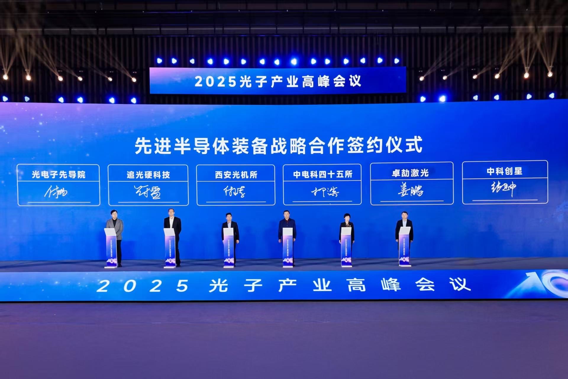 会议还举行了先进半导体装备战略合作签约仪式。中国科学院西安光机所、中国电子科技集团公司第四十五研究所、西安追光硬科技创业投资管理有限公司、中科创星、陕西光电子先导院科技有限公司、广东卓劼激光科技有限公司等单位将加强合作,进一步完善光子产业链上游核心环节。