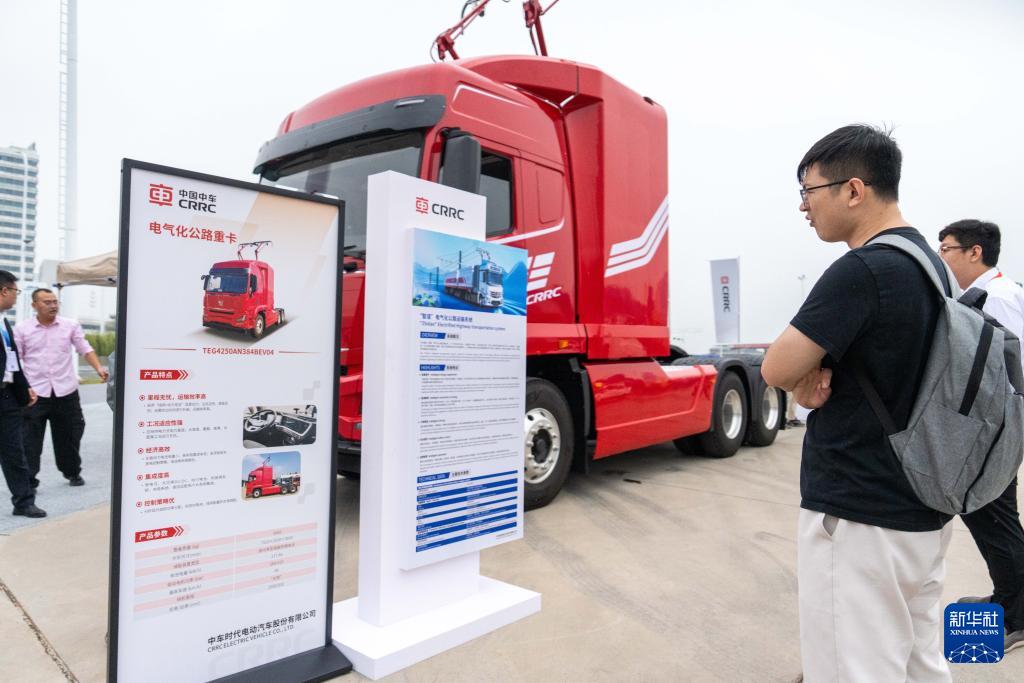 这是11月7日在株洲国际会展中心拍摄的一辆电气化公路重卡。