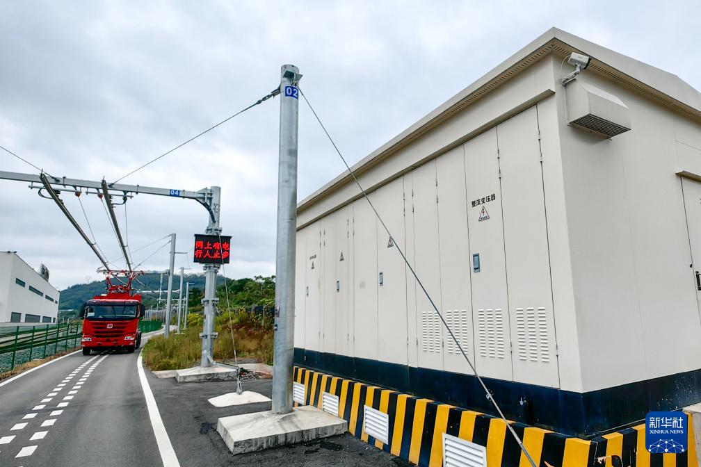 10月21日,一辆电气化公路重卡在中车株机公司电气化公路试验线试验运行。