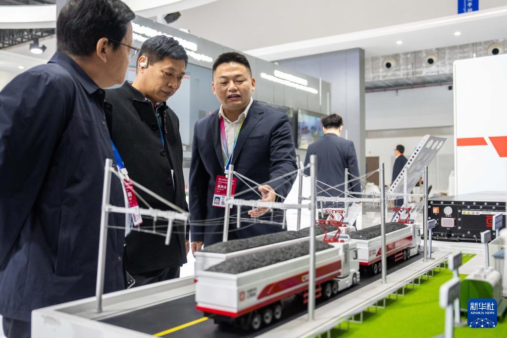 11月7日,观众在株洲国际会展中心了解“智道”电气化公路及露天矿电气化运输系统。