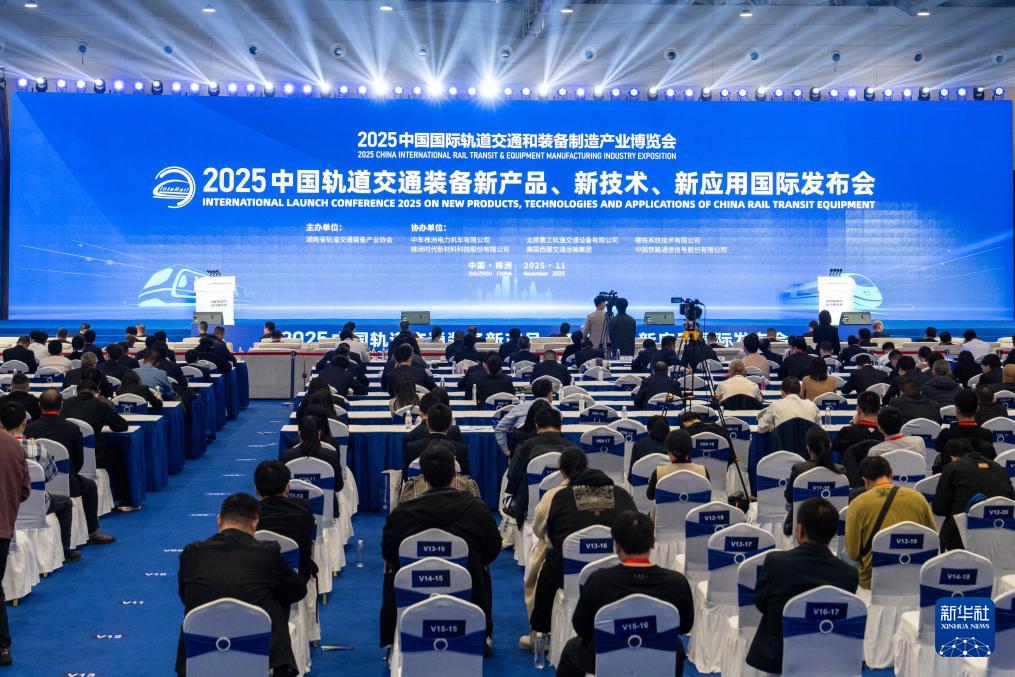 这是11月7日在株洲国际会展中心拍摄的2025中国轨道交通装备新产品、新技术、新应用国际发布会现场。