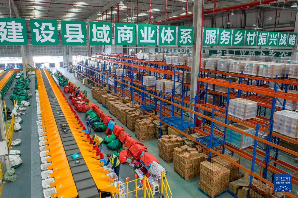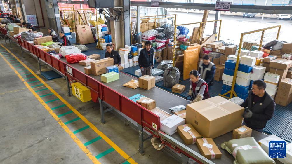 11月10日,工作人员在贵州省黔西市双桥客运站城乡快递物流中心分拣快递包裹。