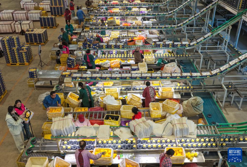 11月10日,工作人员在山东省荣成市城西街道一家企业分拣苹果。
