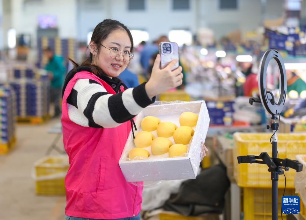 11月10日,主播在山东省荣成市城西街道直播带货。