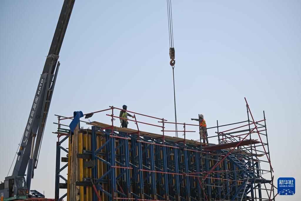 夯基垒台、立柱架梁,中国建设者正以汗水与匠心,在科威特沙漠中描绘一座现代化新城的壮丽轮廓,为中科合作铸就新的里程碑。