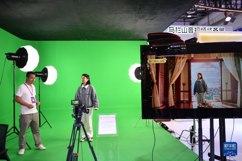 11月12日,观众在2025中国新媒体技术展上体验虚拟片场线下打卡系统。