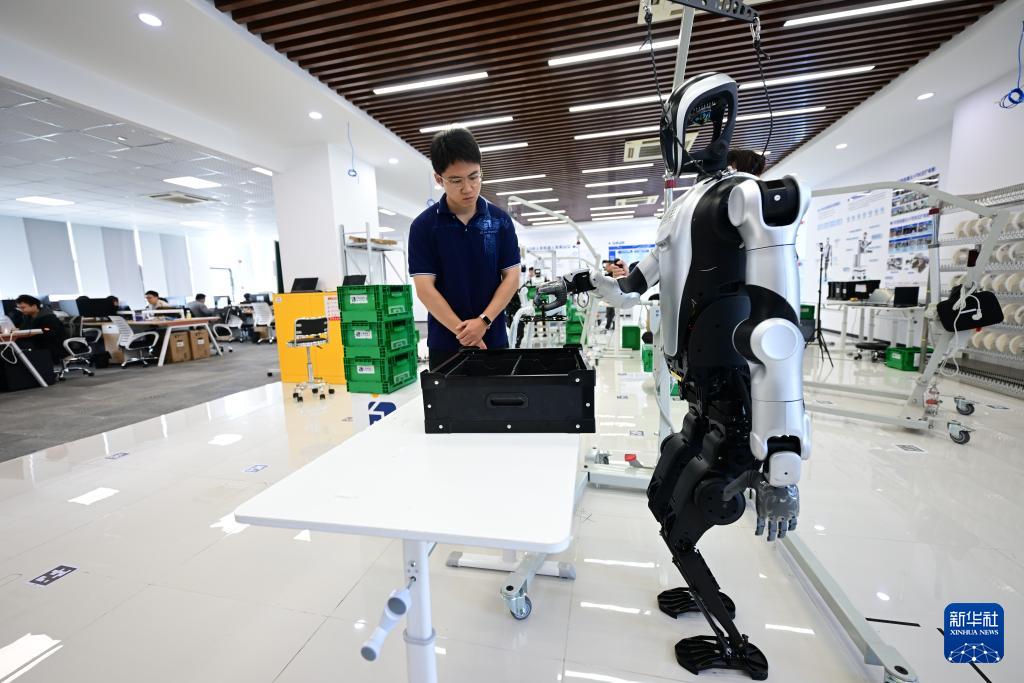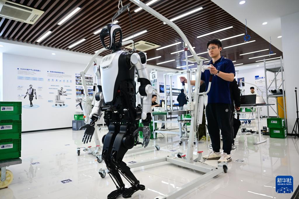 10月24日,在合肥乐聚机器人技术有限公司,工作人员在查看人形机器人的测试数据。新华社记者 杜潇逸 摄