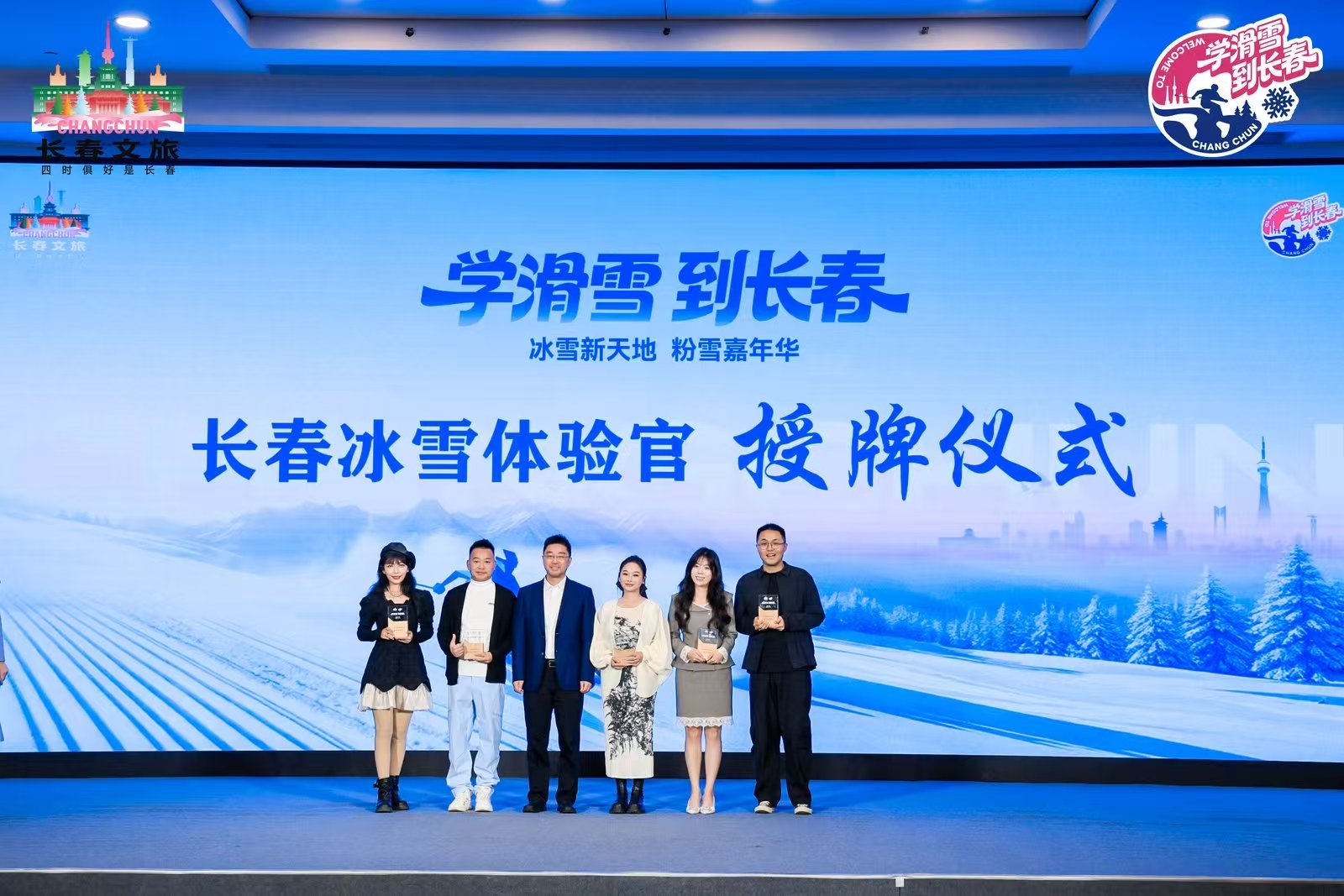 现场达人互动环节高潮迭起。长春文旅推荐官“雪饼猴”空降互动,生动推介长春冰雪资源;河森-SH环游中国、小马达逛吃、李影Lily、蕾蕾流浪记、硬核肉脸等多位北京文旅达人被授予“长春冰雪体验官”,他们将以短视频、直播等方式深度推介长春冰雪;长春市动植物公园西游乐园演员闫东现场演唱了长春市群众艺术馆创作的歌曲《百年守望》,为推介会增添了浓厚的艺术气息。