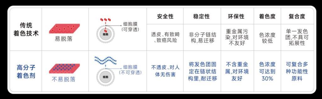 该原料化学名称为“2-(4’-偶氮-苯胺聚氧乙烯醚)-4-甲基苯并噻唑基水性聚氨酯”,是2021年《化妆品新原料注册备案资料管理规定》实施以来,第二个成功获批的注册类新原料。此举标志着我国化妆品着色技术从“跟跑”迈向“领跑”的历史性跨越。针对传统小分子着色剂易透皮吸收、稳定性差等行业痛点,该原料采用第四代水性聚氨酯合成技术,将发色基团嵌入高分子骨架,形成远超皮肤渗透阈值的稳定结构,开创“非透皮着色”全新路径。