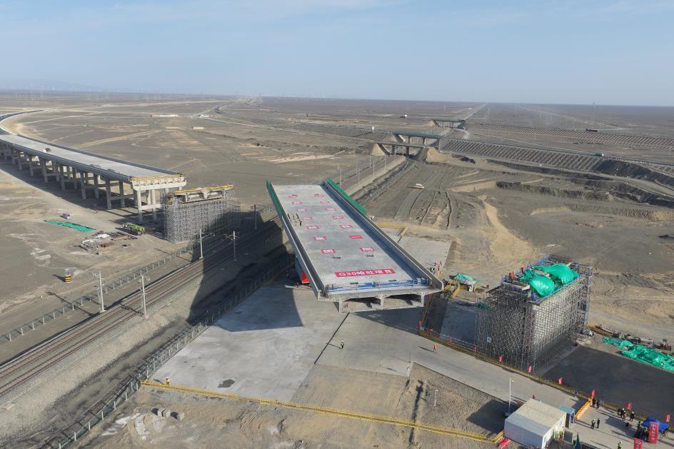 “各方准备就位,转体正式开始!”11月18日,随着现场指挥一声令下,新疆高速公路上跨径最大转体桥——G30连霍高速哈密至吐峪沟段改扩建工程上跨兰新铁路1号大桥T形刚构连续梁开始缓缓转动,历时70分钟逆时针旋转61度,以毫米级精度精准落位。