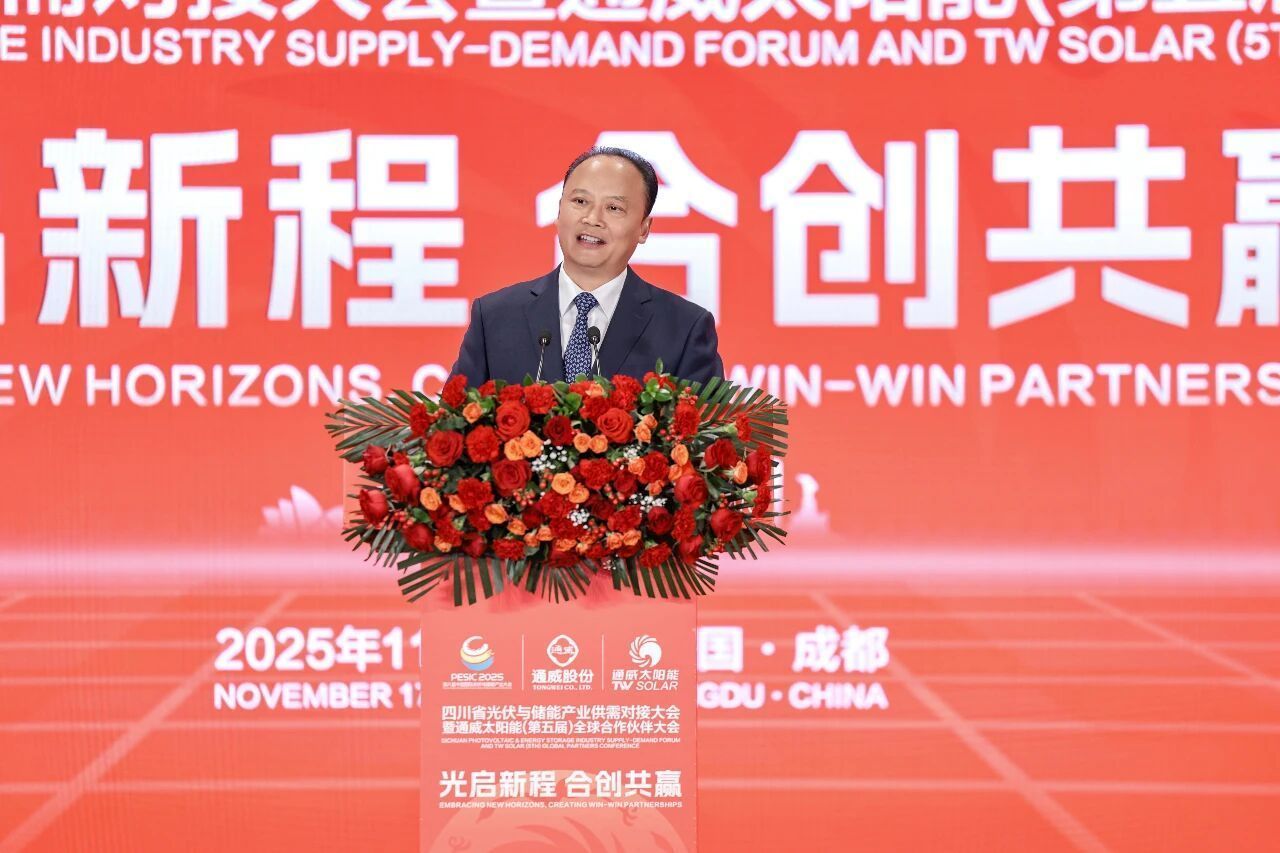 11月17日,四川省光伏与储能产业供需对接大会暨通威太阳能(第五届)全球合作伙伴大会在成都通威国际中心举行。大会以“光启新程 合创共赢”为主题,各级领导嘉宾、权威专家、行业领袖及全球优秀合作伙伴齐聚蓉城,聚焦光储产业高质量发展新趋势,共话光储产业新未来。