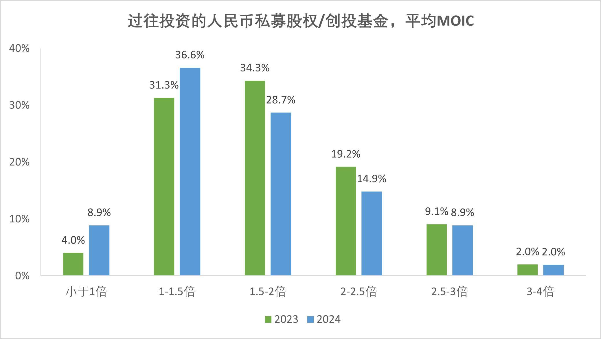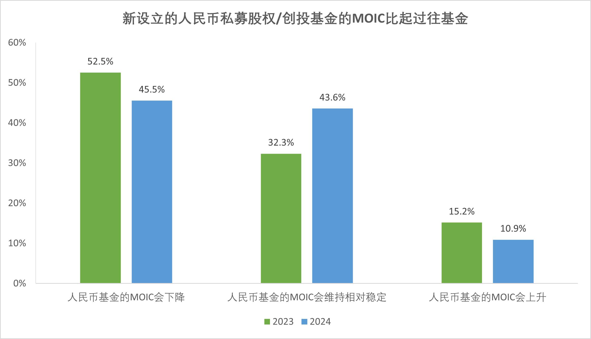 超六成(64.4%)机构MOIC在1x-2x之间,仅2.0%达3x以上,多数投资尚未实现高倍数收益;45.5%预期MOIC降低。