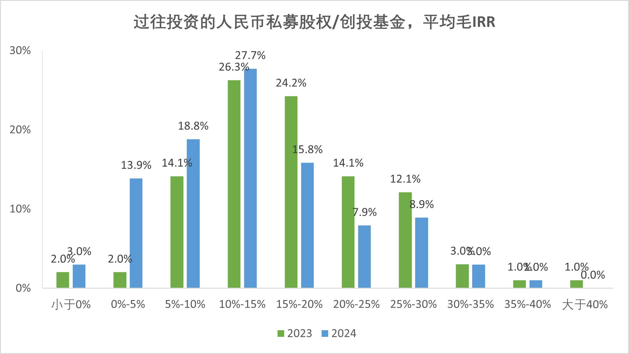 调研结果显示,IRR主要集中在5%-20%区间(63.4%),仍有16.8%的机构IRR低于5%,人民币基金业绩分化明显;44.6%预测新基金IRR将下降。
