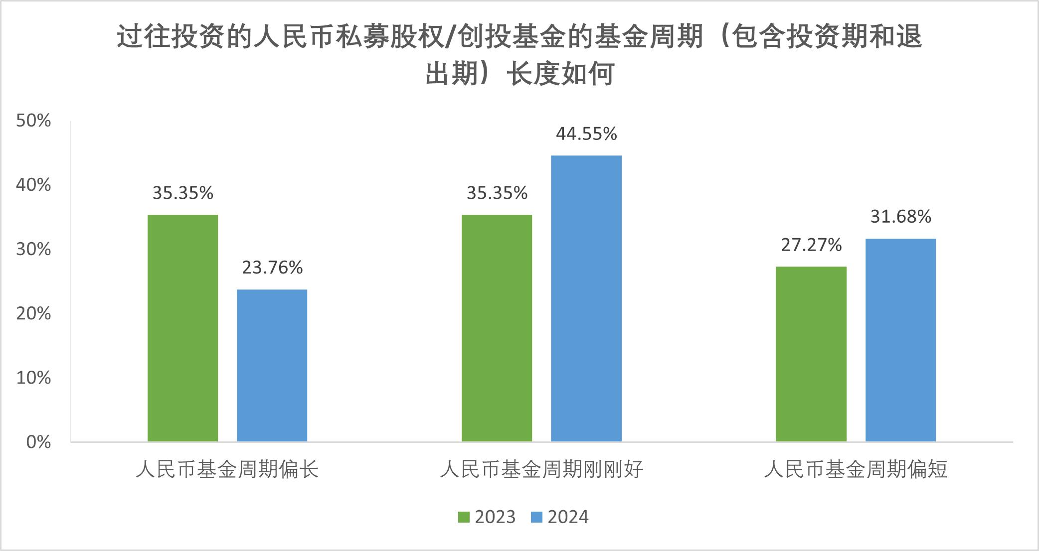调研结果显示,基金存续期以“4+3”模式为主,31.7%机构认为基金整体周期偏短,23.8%则认为偏长,这种分化现象提示管理人在产品设计时需更精准匹配LP的期限偏好。当前基金大多投向硬科技等国家战略性新兴重点行业,需更长的培育期以匹配技术转化节奏,主流的“4+3”模板已较难适配,LP对S基金的关注增加也在一定程度上反映基金现存周期不足所导致的退出难问题。