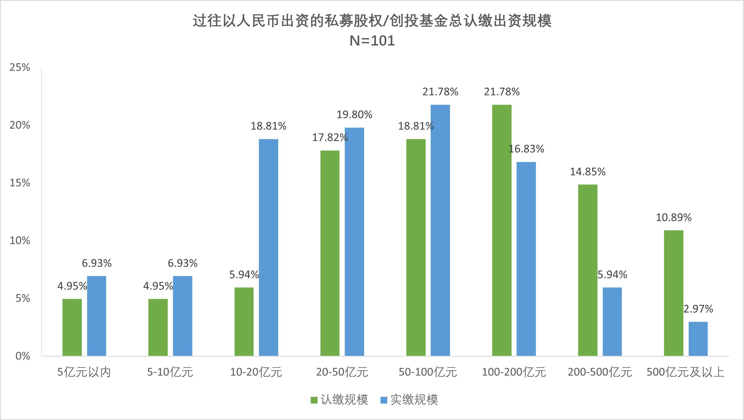 调研结果显示,近半数(47.5%)机构认缴规模超100亿元,其中11家机构认缴规模达500亿元以上,但实缴规模超100亿元的机构占比不足三成(25.7%),反映出部分大额承诺资金尚未完全到位,存在显著的“认缴-实缴”资金到位缺口,机构募资环境承压,行业出清加速。