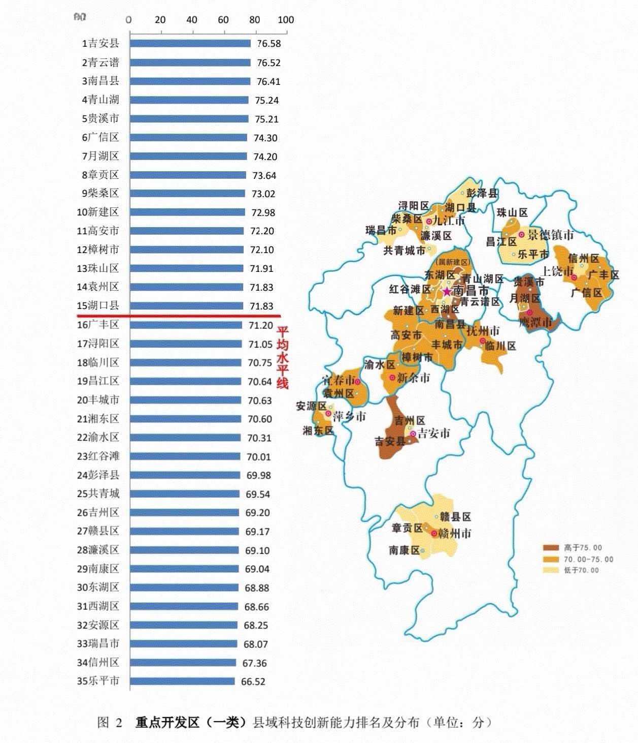 在江西省科技厅、江西省统计局的大力支持下,江西省科学院从2015年开始进行县域科技创新能力评价研究,已连续8年发布《江西省县域科技创新能力评价报告》,通过综合分析江西省统计局、江西省科技厅、江西省市场监督管理局(知识产权局)、江西省科学技术协会等部门采集的数据及实地调研,对全省的县区科技创新能力进行全面综合的系统评价,并提出有针对性的对策建议,为各县(市、区)提升本区域科技创新提供有力的支撑。