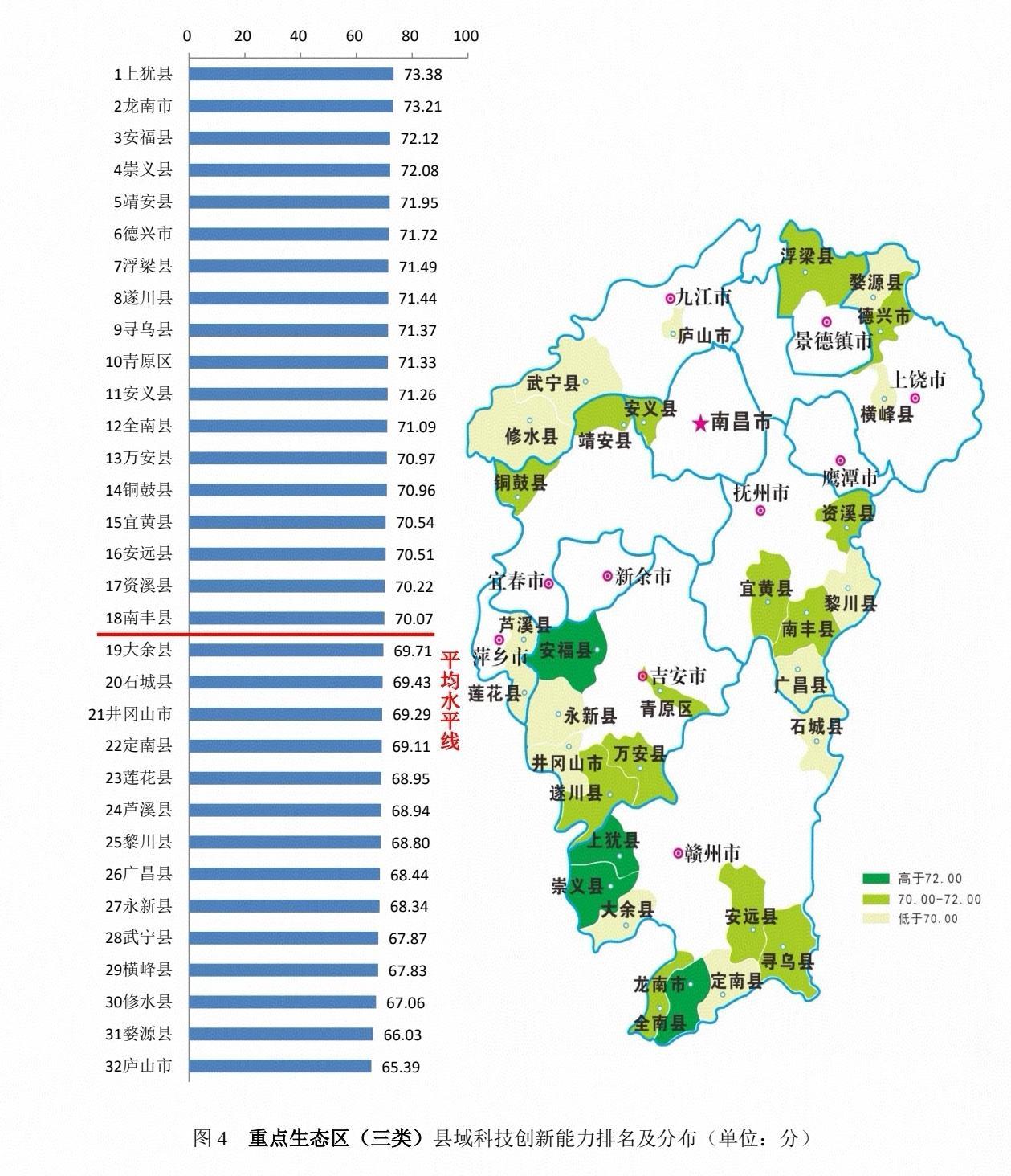 《报告》从创新环境、创新投入、创新成效、经济社会发展四个方面,选取了8个二级指标、20个三级指标,对江西省100个县(市、区)科技创新能力开展评价。