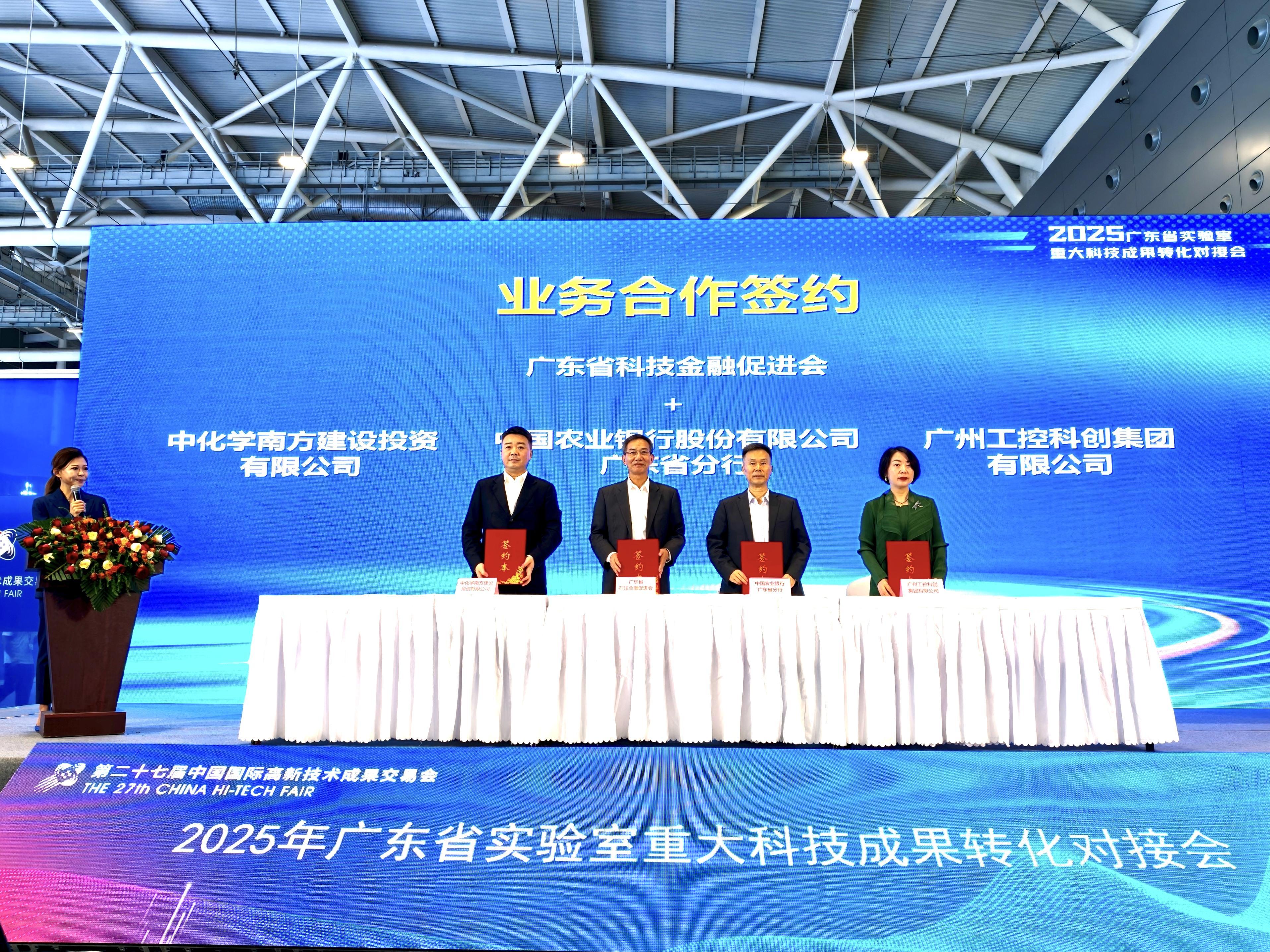 当日,一批重大合作项目落地生根。霖南基因科技(广东)有限公司与广州中创集团、松山湖材料实验室与南沙海洋装备产业园分别达成成果转化协议;中化学南方建设投资有限公司、广州工控科创集团、中国农业银行广东省分行等与广东省科技金融促进会签署业务合作协议。