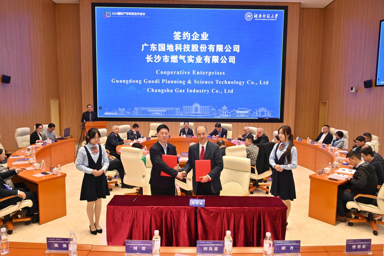 11月15-17日,2025地理学创新与区域可持续发展国际产学研用合作会议在湖南省长沙市举行。来自南非、德国、英国等十余个国家,以及北京大学等国内高校和科研院所的专家学者与企业代表参会。会上,湖南师范大学分别与广东国地科技股份有限公司、长沙市燃气实业有限公司签署项目合作协议。