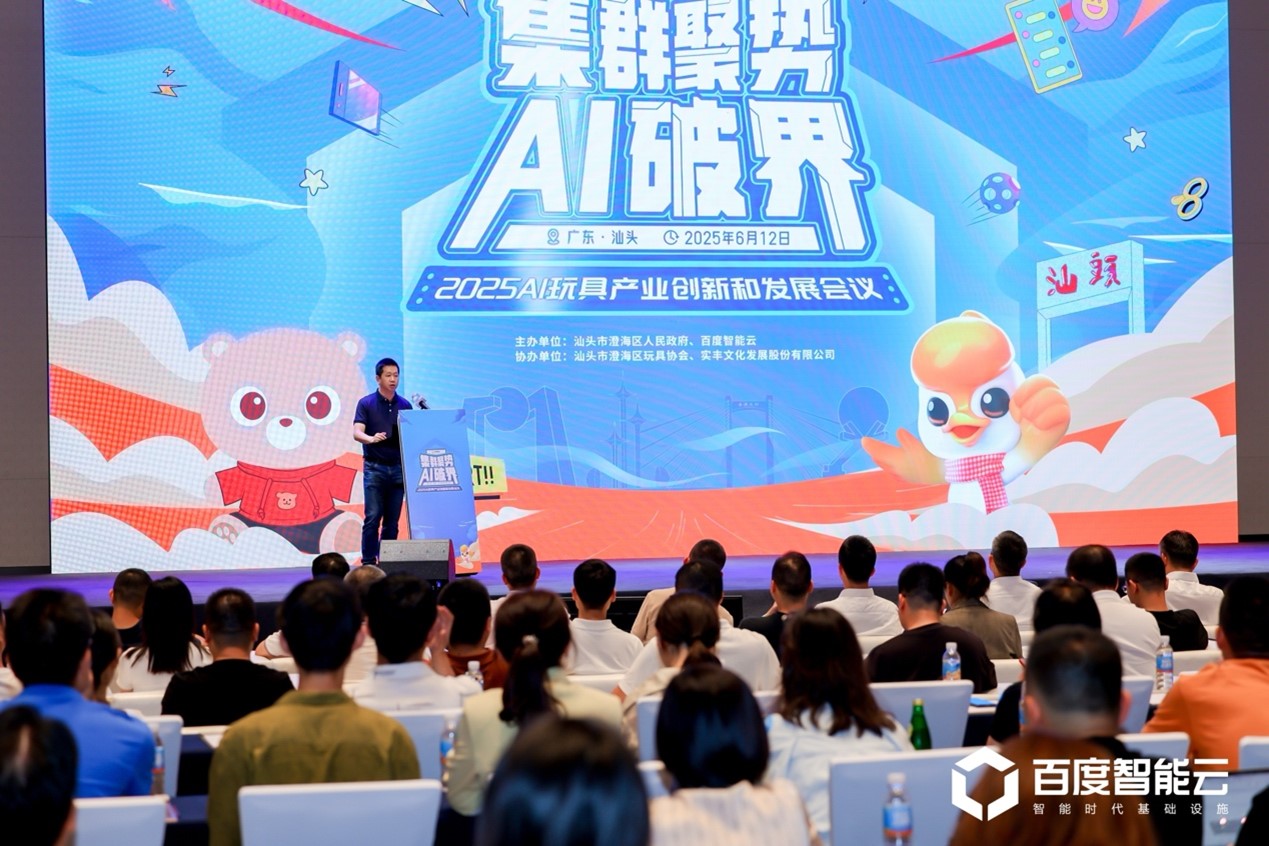 6月12日,由百度智能云、汕头市澄海区人民政府主办,澄海玩具协会与实丰文化发展股份有限公司(以下简称“实丰文化”)协办的2025 AI玩具产业创新和发展会议在“中国玩具礼品之都”澄海开幕。此次大会以“集群聚势·AI破界”为主题,汇聚全球AI技术厂商、知名IP方及产业链上下游伙伴,共探AI玩具的生态构建与创新发展路径,加速传统玩具制造向高端智造转型升级。
