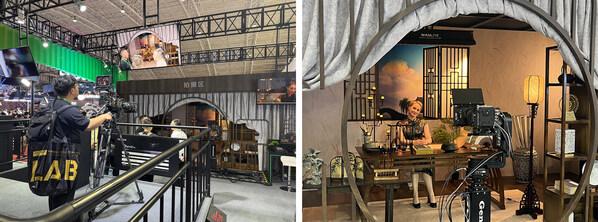 走进富士胶片(中国)展台,一个融合东方美学与异域风情的“古风书房”影棚场景引人注目,暗调氛围中层次分明的光影营造出浓郁的电影质感,让人仿佛置身影视创作现场。展台内,四组精心设计的机位以不同高度、角度排布,模拟影视创作中的多视角需求——这里不仅有Duvo系列三款PL卡口电影变焦镜头“HZK25-1000”“HZK24-300”“HZK14-100”的实景演示,更设置了由4K广播电视变焦镜头“FUJINON LA30x7.8BRM-XB2”(以下简称“LA30”)组成的移动拍摄位,让参观者能够近距离操作体验,直观感受从广角到长焦、从固定机位到动态跟拍的丰富创作可能。