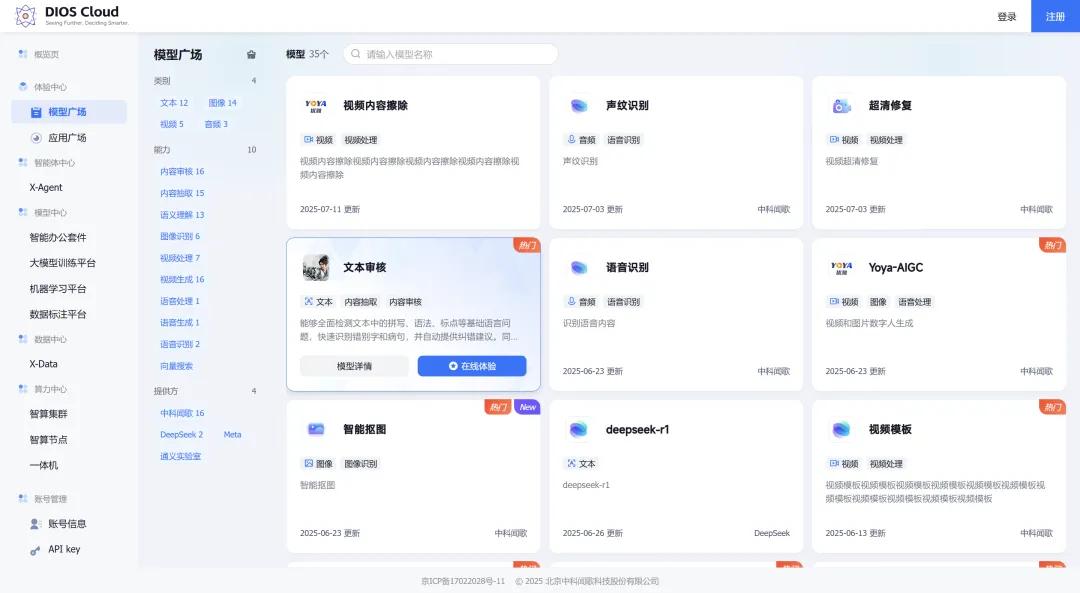 DIOS决策智能操作系统的DIOS Cloud的云端智能服务,适用于希望快速获得AI能力、无需自建算力的客户,提供: