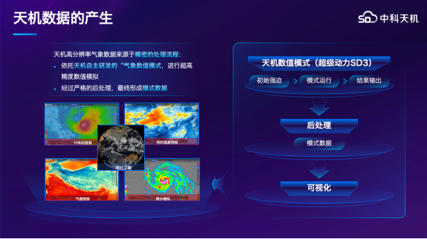 此次共享的数据源于中科天机自主研发的“全球区域一体化天气数值模拟系统”。该系统依托“超级动力SD3”核心算法引擎与中科曙光AI超集群算力支持,突破了高分辨率气象模拟中的“灰区”和时效性两大世界级难题。天机系统在同等算力条件下,实现了比国际主流系统更高的模拟效率和准确率。