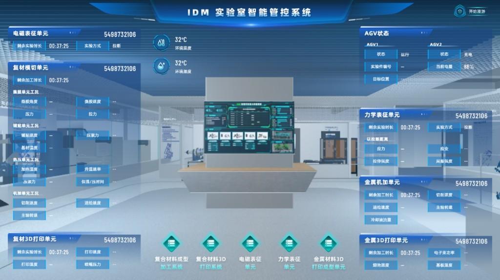 该智能产线由浙江省天目山实验室IDM团队和航空工业建投团队共同研发,集中展现了数智融合在新材料制备与表征领域的前沿成果。该产线通过引入AI驱动模型、材料数据库、跨尺寸仿真及自动化高通量无人实验室的软硬件资源,实现了材料设计制备与表征的自主决策与实时优化,同时结合三维数字孪生平台,对生产全流程进行同步仿真与监控,成功打造出“7×24小时无人值守”的“无人实验室”,为新材料研发按下“快进键”。