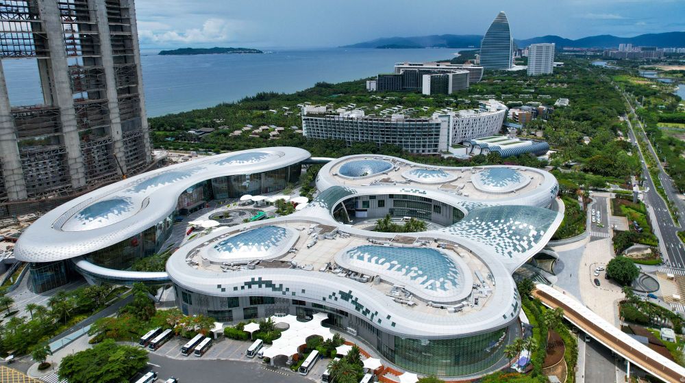 这是2025年5月29日拍摄的位于海南省三亚市的三亚国际免税城(无人机照片)。新华社记者 杨冠宇 摄
