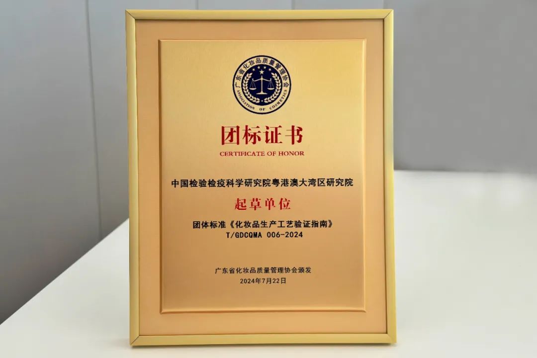 近日,由中山健康基地“国字号”平台中国检验检疫科学研究院粤港澳大湾区研究院(以下简称“大湾区研究院”)、广东省药品检验所、广东省化妆品质量管理协会和上海市食品药品检验研究院近30所单位、企业共同制定的团体标准T/GDCOMA 006-2024《化妆品生产工艺验证指南》正式发布并实施。