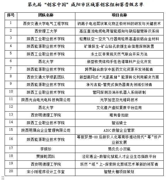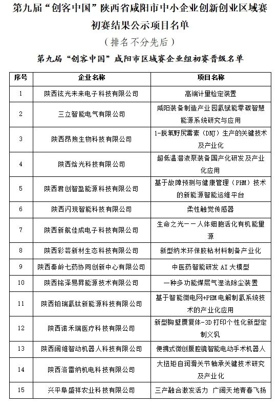 8月19日,由咸阳市工业和信息化局、咸阳市财政局、咸阳高新区管委会主办,咸阳高新技术创业服务中心、咸阳高新创新科技孵化器有限公司承办的第九届“创客中国”陕西省咸阳市中小企业创新创业区域赛初赛评审结果出炉。