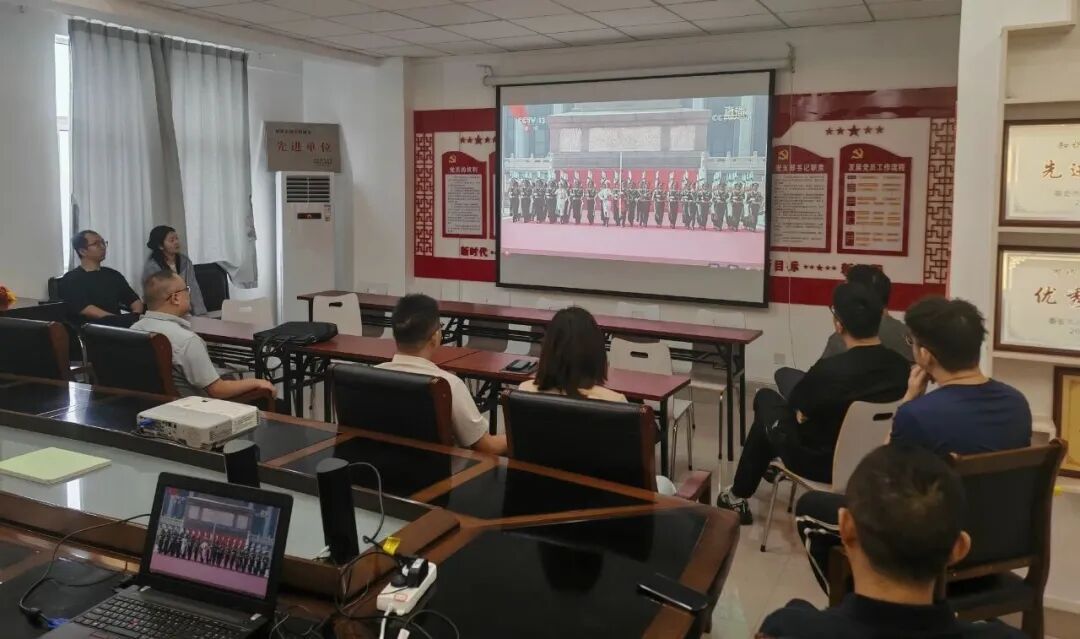 泰安高新区各部门单位干部职工、辖区企业员工及中小学生等怀着无比激动的心情,早早地聚集在会议室、办公室等地,通过电视直播共同观看了这场盛大的阅兵仪式。当整齐划一的徒步方队迈着铿锵有力的步伐走过天安门广场,当先进的武器装备依次亮相展示我国强大的国防力量,当一架架战机呼啸着飞过蓝天,观看现场不时响起热烈的掌声和赞叹声。