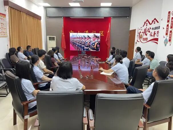 为纪念中国人民抗日战争暨世界反法西斯战争胜利80周年,弘扬以爱国主义为核心的伟大民族精神,增强民族荣誉感,9月3日上午,中山火炬高新区组织机关事业单位、区属企业、社区的广大党员干部群众,集中收看纪念中国人民抗日战争暨世界反法西斯战争胜利80周年大会直播,共同见证这一庄严而神圣的时刻。