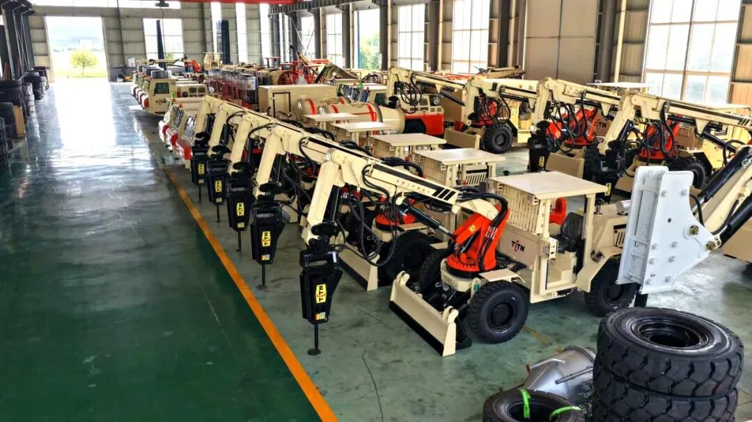 十余载匠心耕耘,天腾重机已发展成为行业内的“隐形冠军”。通过与中国地质大学(武汉)等科研院所建立战略合作,公司组建了强大的研发团队和高新技术产学研基地。产品线从最初的撬毛台车、破碎台车,扩展到智能装药台车、矿用混凝土喷射车等8系列40多个产品,并实现矿山井下设备数字化远程控制,填补了国内这一领域的多项空白,结束了我国对该领域装备完全依赖进口的历史,改变“卡脖子”窘境,达到了国际先进水平。