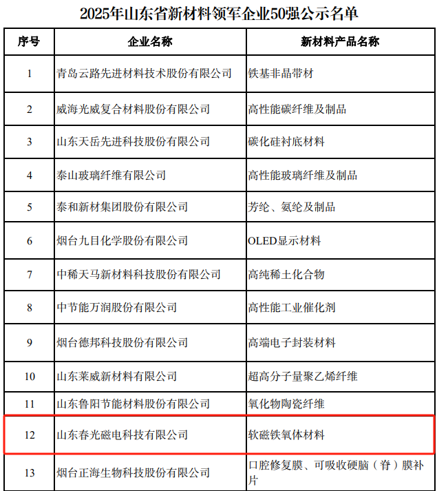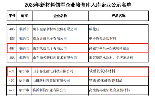 其中,山东春光磁电科技有限公司凭借其自主研发的软磁铁氧体材料,打破国外技术壁垒,实现关键材料国产化突破,成功入选全省新材料领军企业50强,充分展现了临沂高新区在新材料领域的创新实力与发展潜力。