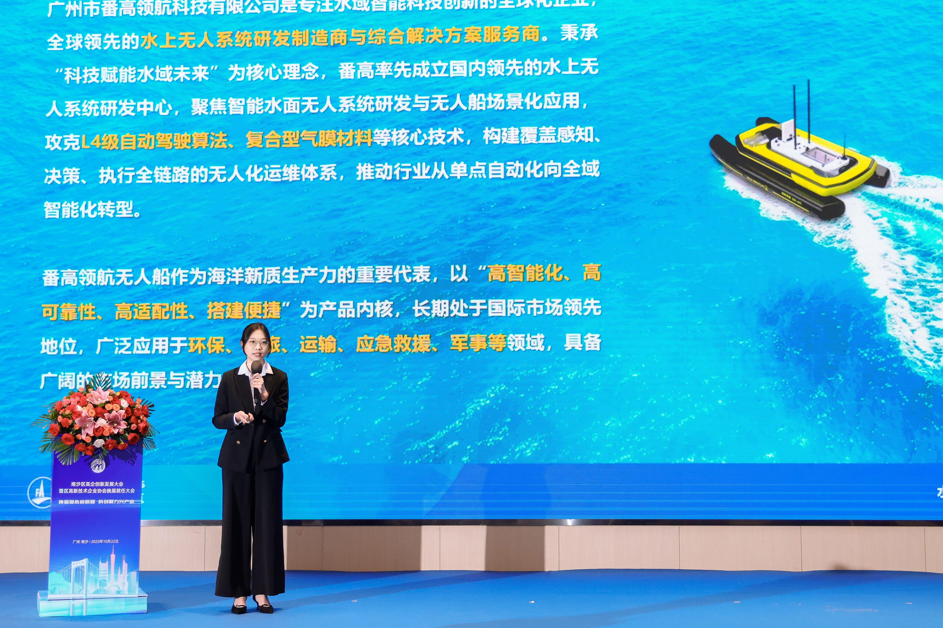 大会特设深海智人“凤凰座”悬浮式海底管缆埋设机器人、番高领航水面保洁机器人“FA-AC智洁星”、华科尔无人机消防车灭火作战系统新品发布环节,集中展示了南沙企业在高端装备领域的创新实力。