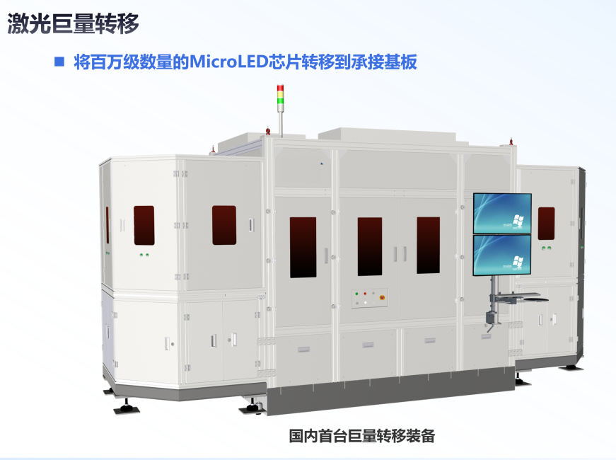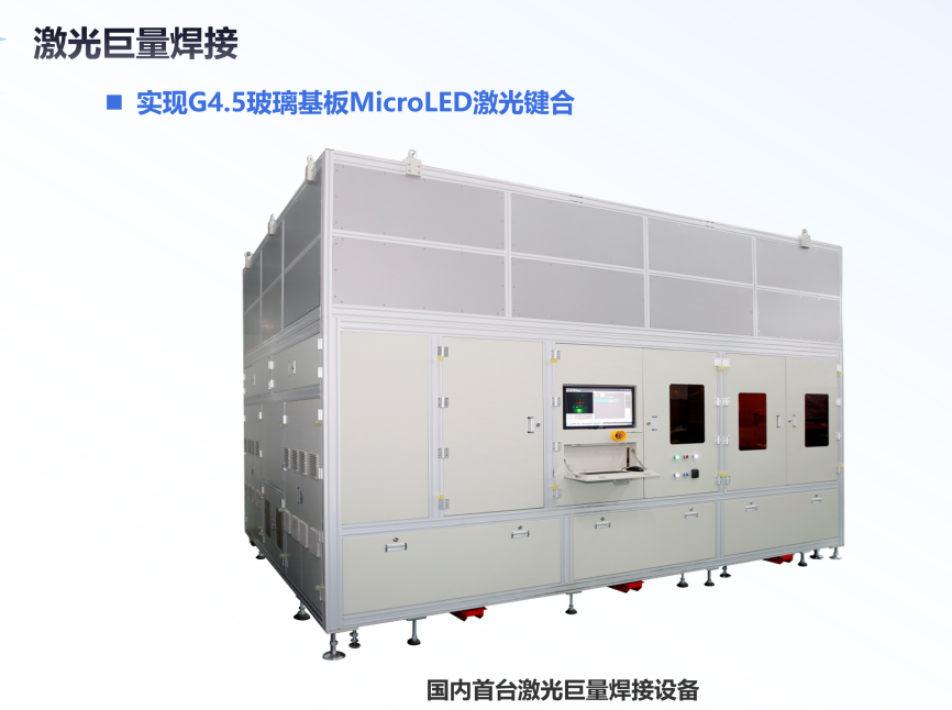通过技术创新有效解决巨量转移过程中的波长一致性、精度与良率兼容问题,并成功突破G4.5玻璃基大幅面焊接问题等痛点和难点。