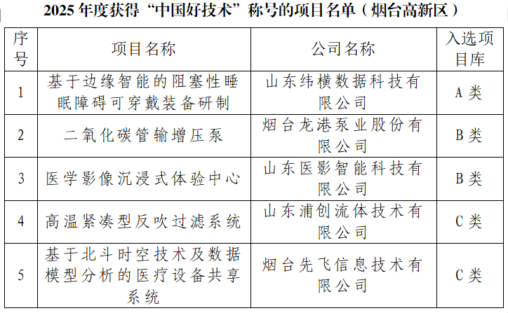 近日,中国生产力促进中心协会公布2025年度“中国好技术”评选结果,烟台高新区推荐申报的5项科技成果从全国654项参评项目中脱颖而出,成功斩获此项殊荣,涵盖智慧医疗、高端装备等关键领域,彰显了区域创新驱动发展的强劲动能。