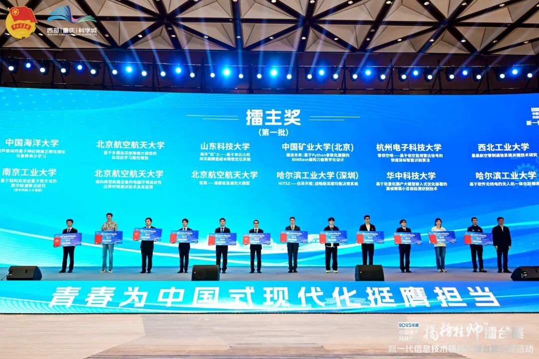 10月28日,2025年度中国青年科技创新“揭榜挂帅”擂台赛新一代信息技术领域主擂台赛颁奖仪式,在西部科学城重庆高新区科学会堂圆满落幕。